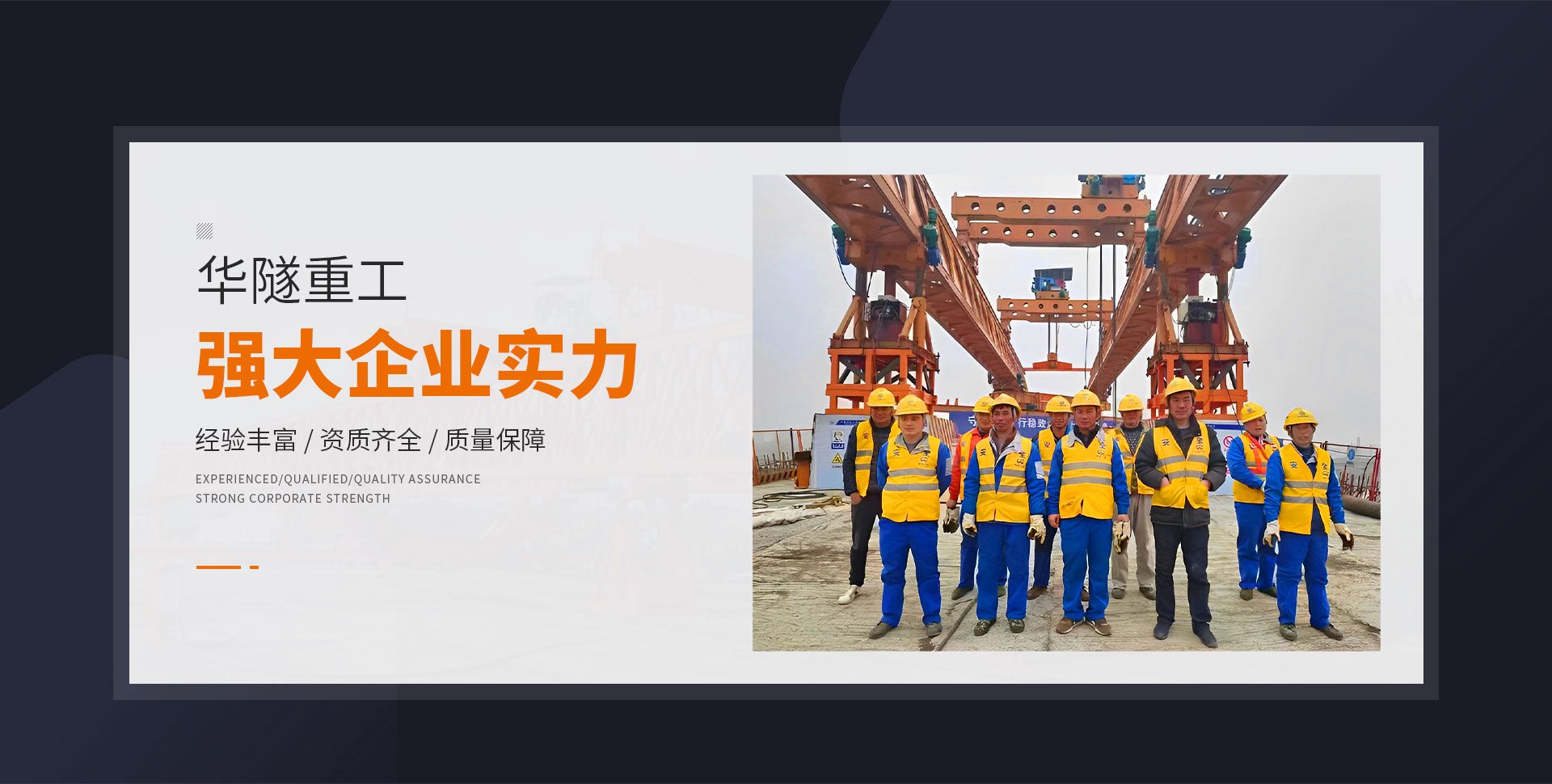 河南華隧重工機械裝備有限公司主要從事通用門式起重機、橋式起重機、電動單梁起重機,輪胎式起重機、架橋機、提梁機、遠梁平車、鋼絲繩電動萌蘆、卷揚機、起重配件制造、銷售:起重機械租賃、安裝和維修,起重設備園收,機械設備維修,鋼結構工程承包,橋梁工程及技術咨淘服務,銷售五金制品、機電設備:建設工程監理,建設工程設計,各類工程建設活動,建筑勞務分包,建筑物折除作業,施工作業,工程管理服務,土石方工程施工,裝如發運?! 」疽淹ㄟ^IS0國際質量、環境、健康與安全三合一標準認證,特種設備制造許可證和特種設備安裝改造維修許可證。擁有完熟的質量管理體系。嚴格的管理制度,強大的生產能力和先進的檢測手段,在保證產品質量的同時,也具備了極強的市場競爭力。  公司堅持科技創新為理念,產品質量為核心,注重信譽,建立了減信可靠、快捷、思速。便利周到的售后服務網絡?! ∥覀儞碛械募夹g專家和技術服務隊伍為客戶提供充善的售前技術支持和全天候的售后服務體系,讓您無后顧之憂,享受一站式的超值服務。  “華隧重工,伴您成功“是華隧重工永遠的宗指,真被的希望與各界朋友攜手并進。共創輝準!